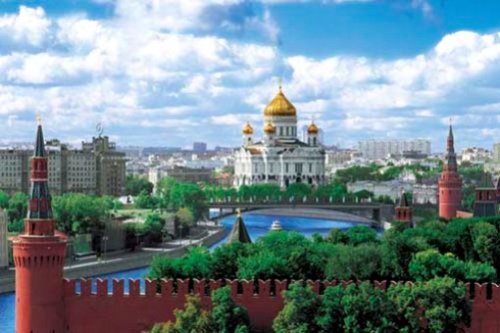 いったいどこ? タイトルは「モスクワのクレムリンと赤の広場」なのですが、クレムリンの城壁のごく一部が写っているだけで、赤の広場はかけらもありません。