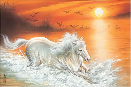 アニメーションのような色彩。 朝陽に照らされる猪の親子を描いたジグソー。写実的で牡丹や竹なども描かれていて和風ですが、日本画というより、まるでアニメを思わせるようなあでやかな色彩です。少し年齢が下の方でも大人の方でも両方楽しめそう。日本画の落ち着きを求める方には少し派手すぎる印象があるかも。でも色彩は十分きれいです。